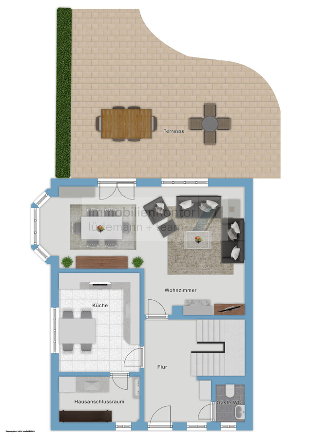 Die Käuferprovision (laut Exposé) ist inklusive der jeweils gültigen, gesetzlichen Mehrwertsteuer auf dem Kaufpreis und ist mit Zustandekommen des notariellen Kaufvertrages verdient und vom Käufer zu zahlen. Grunderwerbsteuer, Notar und Grundbuchkosten sind vom Käufer zu tragen. Alle Objektangaben sind ohne Gewähr und basieren ausschließlich auf Informationen, die uns vom Auftraggeber überlassen wurden. Dieses Exposé ist nur für Sie persönlich bestimmt. Eine Weitergabe an Dritte ist an unsere ausdrückliche Zustimmung gebunden und unterbindet nicht unseren Provisionsanspruch bei Zustandekommen eines Vertrages. Alle Gespräche sind über unser Büro zu führen. Bei Zuwiderhandlung behalten wir uns Schadenersatz bis zur Höhe der Provisionsansprüche ausdrücklich vor. Zwischenverkauf ist nicht ausgeschlossen.