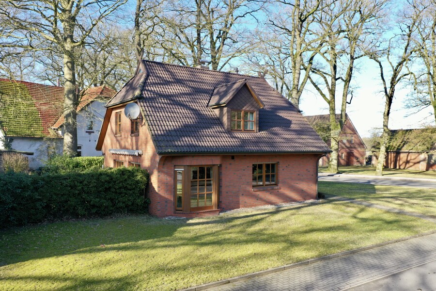 - Einfamilienhaus mit Niedersachsengiebel und Pferdeköpfe am Dachfirst