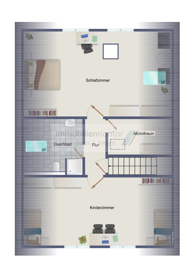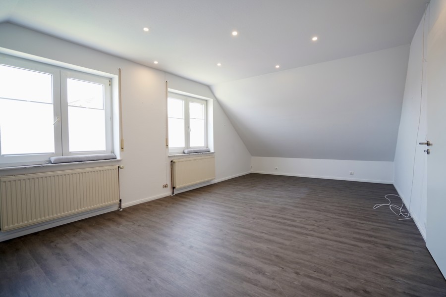 Das Dachgeschoss erstreckt sich über ca. 65 m² und erhielt 2023 einen neuen hochwertigen Vinylboden. Der Bereich umfasst zwei Schlafzimmer, einen Abstellraum und ein Duschbad mit Veluxfenster, das für angenehmes Tageslicht sorgt.