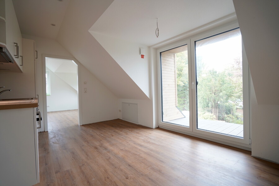 Die hier angebotene 1-Zimmer-Wohnung im Dachgeschoss umfasst ein Zimmer, eine Küche mit Ess- und Eingangsbereich, ein Duschbad sowie einen kleinen Balkon.