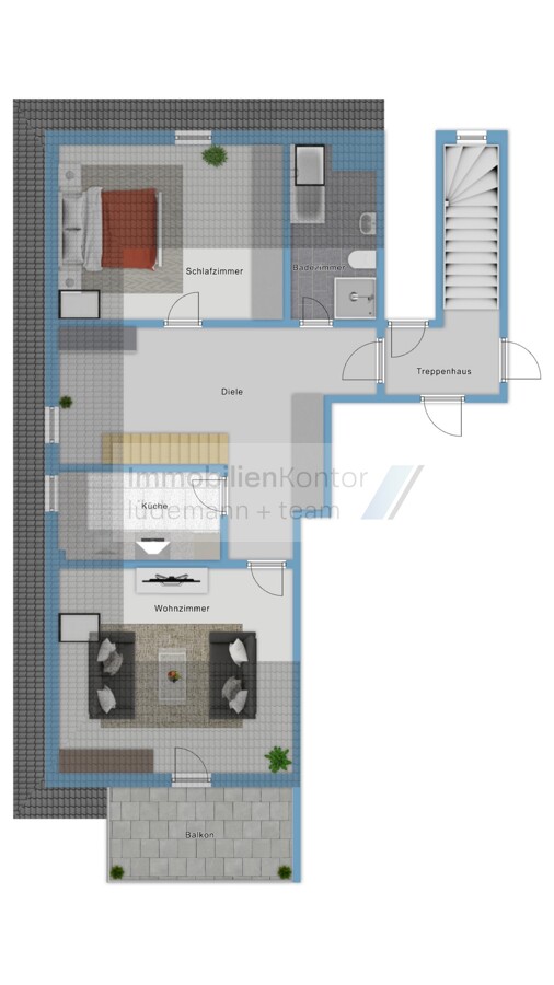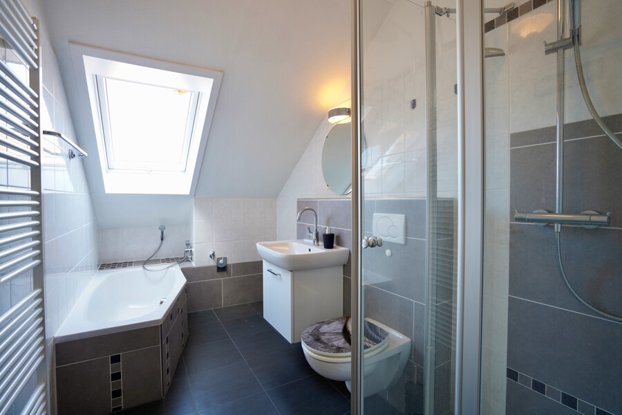 Der beheizte Spitzboden bietet flexible Nutzungsmöglichkeiten, zum Beispiel als Hobbyraum, Homeoffice oder zusätzliche Abstellfläche. Obwohl dieser Bereich nicht in der Wohnfläche enthalten ist, lässt er sich wohnähnlich nutzen.