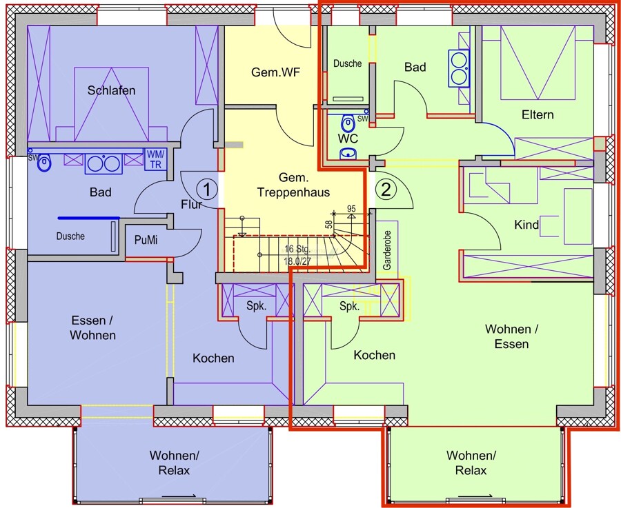 Darüber hinaus steht im Erdgeschoss eine 2-Zimmer-Wohnung mit Duschbad, Flur und ebenfalls zusätzlichen, verglastem Wohnbereich zur Verfügung.