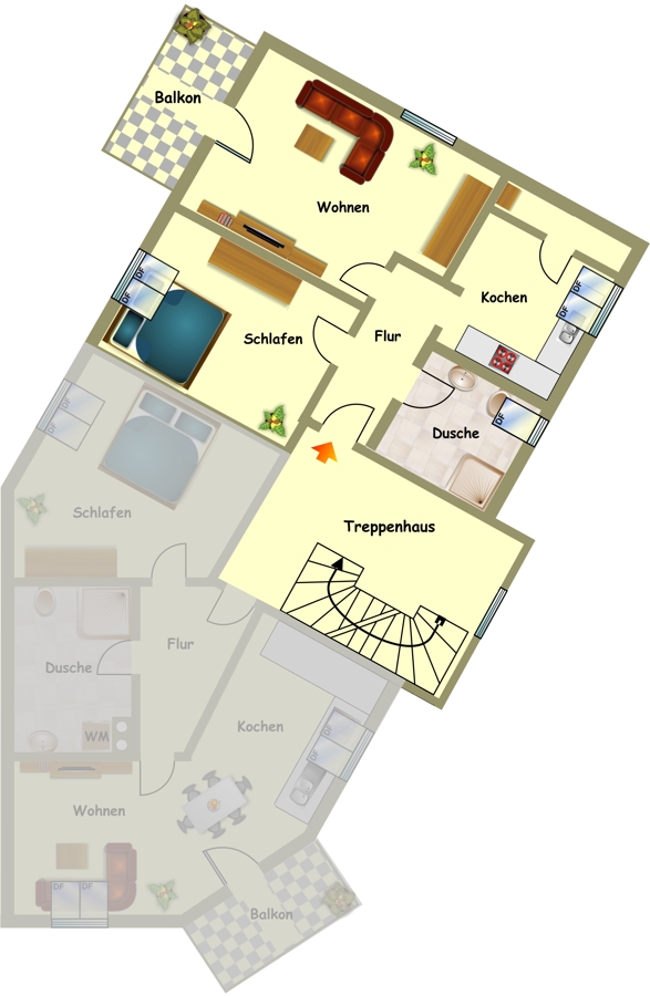 Beheizt wird jede Wohnung im Haus über eine eigene Gasheizung. Die Nebenkosten für Gas, Strom, Wasser und Abwasser werden direkt vom Mieter mit den jeweiligen Versorgungsunternehmen abgerechnet. Diese transparente Abrechnungsweise ermöglicht es Ihnen, den eigenen Verbrauch jederzeit zu kontrollieren und die Kosten gezielt zu steuern.
