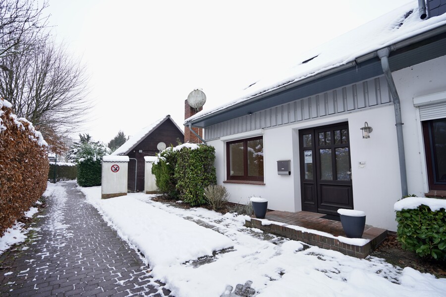 Zur Wohnung gehören ein PKW-Stellplatz auf dem Hof, die Mitbenutzung des Gartens sowie die Nutzung eines Schuppens. Teilweise elektrisch, teilweise manuell bedienbare Außenrollläden sorgen für Komfort und Sichtschutz.