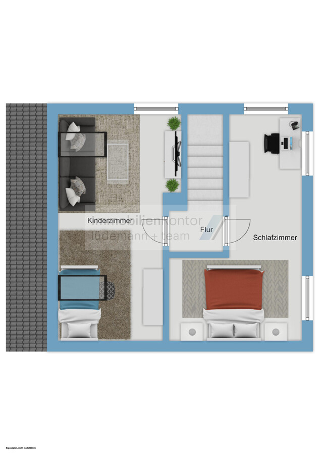 Im Dachgeschoss befinden sich zwei weitere Zimmer, die flexibel als Schlaf-, Arbeits- oder Hobbyräume genutzt werden können und den individuellen Grundriss der Wohnung unterstreichen. Die verwinkelte Raumaufteilung, verschiedene Stilelemente sowie unterschiedliche Bodenbeläge verleihen der Wohnung ihren ganz eigenen Charme und machen sie zu einem Zuhause mit Persönlichkeit.